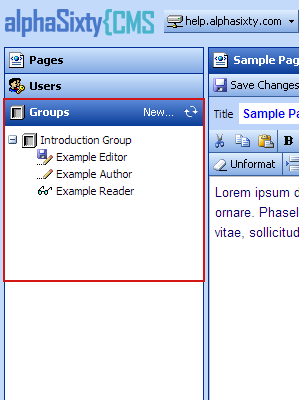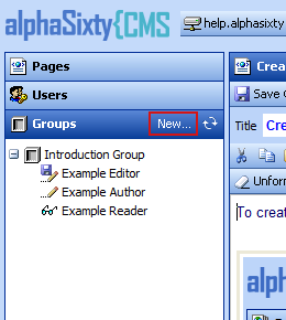 When the Groups Tab is active, a New... link appears in the tab heading. This link allows Administrators to create a new group.
